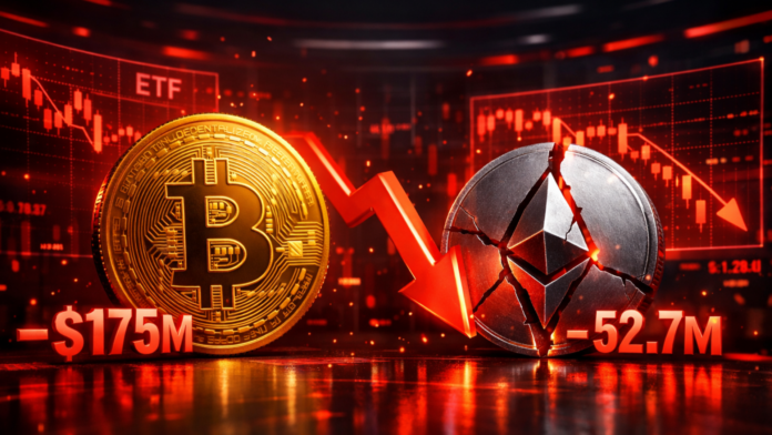 Bitcoin exchange-traded funds (ETFs) continued their downward trend on December 24, recording net outflows totaling $175.29 million. This marks the sixth time in the last eight trading sessions that these funds have faced losses. Similarly, Ethereum ETFs experienced redemptions amounting to $52.70 million, according to data from SoSoValue.