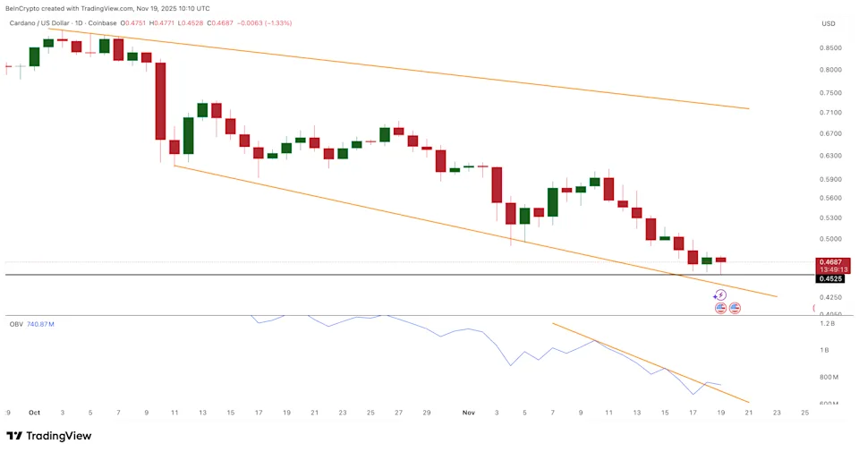 Over the past month, Cardano has faced challenges, experiencing a price drop of 30%. The current price has tested a support level around $0.45, but there are signs of hope. The Chaikin Money Flow (CMF) indicator has revealed a bullish divergence; while ADA”s price made a lower high, it formed a higher high in its momentum. This suggests that capital is entering the market despite the declining price.