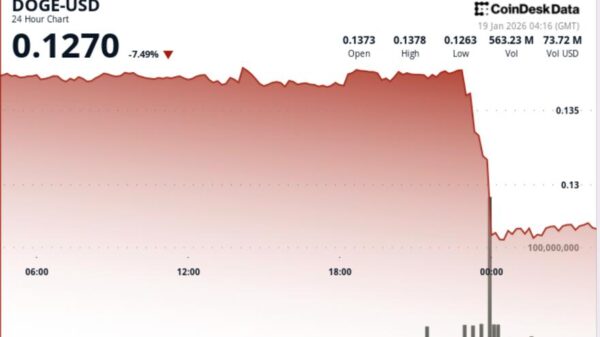 Markets Dogecoin Price Drops 7% as Whale Selling Pressure Mounts Dogecoin"s price fell below $0.13 amid significant whale selling, with key support at $0.127. editorial19 January, 2026