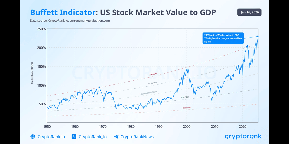 Valuation concerns in the traditional equity markets further compounded the pressure on cryptocurrencies. The Buffett Indicator indicated that the total stock market capitalization relative to GDP had soared to approximately 205%, significantly exceeding historical averages. Such metrics traditionally signal overvaluation, suggesting that a correction could be imminent, which would likely impact Bitcoin and the broader crypto market due to their increasing correlation with U.S. equities.